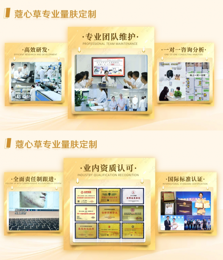 十年间,蔻心草累计斩获50余项权威荣誉:2017-2018年入选质量先锋产品并获大健康产业卓越贡献奖;2019年荣获中国美业青年创业成就奖及AAA级信用企业认证;2023年摘得“亚洲十大创新品牌”及“高质量发展年度人气品牌”;2025年更获第五届广东质量峰会“正品好物”认证,并入选广东省打假协会成员单位,以诚信经营维护消费者权益.......
